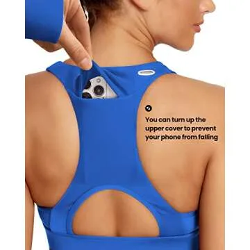 QUEENIEKE Women's Medium Support Back Pocket Energy Sport Bra Cotton Feel Size XS Color Dazzling Blue Back Pocket