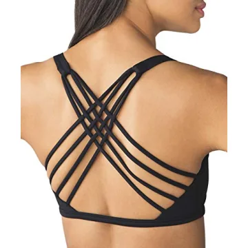 QUEENIEKE Women's Yoga Sport Bra Light Support Strappy Free to Be Bra Size M Color Top Black Across