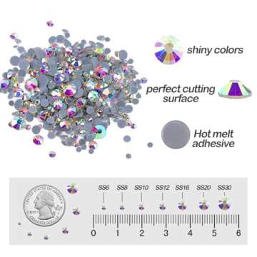Queenme 3300pcs AB Hotfix Rhinestones Hot Fix Crystals Mixed Size Flatback Rhinestones for Clothes Shoes Crafts Hot Fix Round Glass Gems Stones Flat Back Iron on Rhinestones for Clothing 2MM-6MM