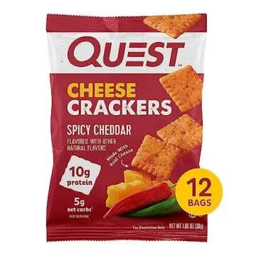 Quest Nutrition Cheese Crackers, Spicy Cheddar Blast, 10g of Protein, Low Carb, Made with Real Cheese, 12 Count (1.06 oz bags)