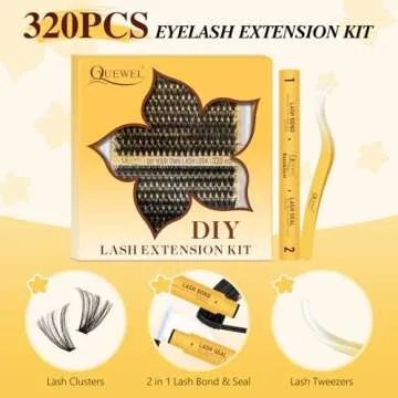 QUEWEL DIY Lash Extension Kit, 320Pcs 60D+80D Lash Clusters Kit Mix 12-18mm 3D Eyelash Clusters with Lash Bond and Seal and Lash Tweezers Easily Create 3D Lashes Clusters at Home (60+80D Kit)