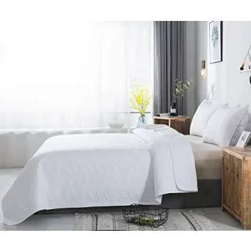 Quilt Set 3 Piece White King Cal King Size New Pattern Bedspread - Soft Microfiber Lightweight Coverlet for All Season (118"x106" Includes 1 Quilt, 2 Shams)