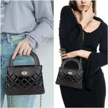 Quilted Crossbody Tote Bags for Women Small Top Handle Purse Trendy Designer Handbag Satchel Tote Shoulder Bag