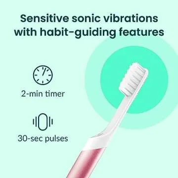 Quip Sonic Toothbrush for Adults - Timed Electric Toothbrush with Cover - Replaceable Brush Head, Soft Bristles, Metal Handle, 3 Month Battery Life - Travel Toothbrush - Pink