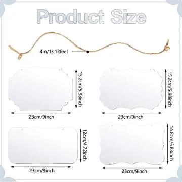 Show more Discover the perfect DIY companion with our delightful set of blank acrylic signs! This versatile package includes 8 robust pieces in 4 unique styles, allowing creativity to flow freely. Each style boasts 2 pieces, along with a practical length of rope to ensure easy hanging. Made from high-quality acrylic, these plaques offer a long-lasting solution for all your crafting and decorative needs.