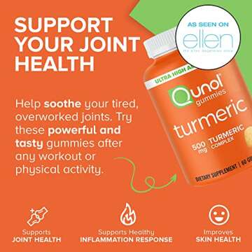 Qunol Turmeric Gummies, Gummy with 500mg Turmeric Curcumin, Joint Support Supplement, Ultra High Absorption Tumeric Curcumin, Vegan, Gluten Free, 2 Month Supply (60 Count, Pack of 2)