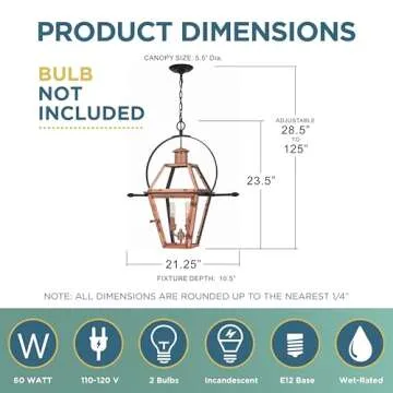 Quoizel Rue De Royal Charleston Outdoor Hanging Lantern, 24 Inch 2-Light Aged Copper Vintage Ceiling Light, French Country Chandelier, Max Hanging Height 125", Outside Lights for Patio or Porch