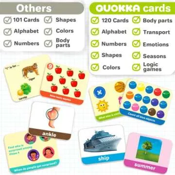 QUOKKA ABC Learning Flash Cards for Toddlers 1-3 Years - 120 Flashcards for Kids 2-4 in a Bag - Alphabet Numbers Letters Preschool Activities Ages 4-8 - Gift Speech Therapy Toys 1-3-5 yo