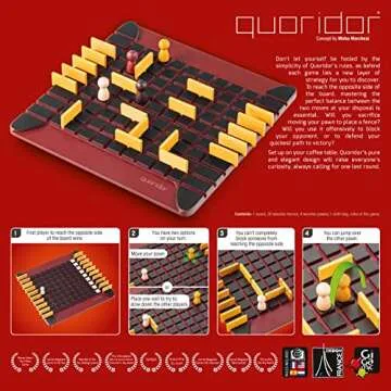 Quoridor is not just a game, but a gateway to brain-teasing fun and strategic competition! Having sold over 1 million copies around the globe, this elegant abstract strategy game is perfect for families and friends alike. Designed for ages 8 and above, players will be captivated by its simple yet engaging gameplay that encourages strategic thinking and tactical maneuvering. Whether you're gathered around the table with your family or challenging friends at a game night, Quoridor...