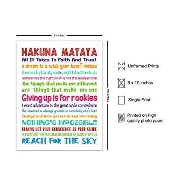 Quotes Wall Decor - Hakuna Matata - Inspirational Gifts for Women, Men, Kids, World Fans - Motivational Wall Art - Decorations - 8x10 print Unframed