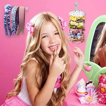QUPIVA 4Pcs Headband Holder Stand Scrunchie Organizer, Girls Hair Accessories Organizer Storage for Headband Hairband Hair Ties, Clear Glitter Adhesive Scrunchy Holder Scrunchie Storage
