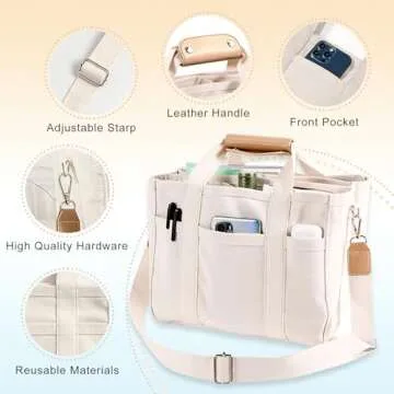 Show more This Multi Pocket Tote is more than just a bag; it’s a vibrant companion for your daily adventures! Crafted with high-quality durable canvas, it is built to withstand the hustle and bustle of everyday life while maintaining its stylish look. Measuring at 13.4 inches by 6.7 inches by 9.8 inches, this tote features a spacious internal compartment that easily accommodates your daily essentials such as wallets, phones, keys, and even a laptop. Organizing your belongings has never been easier with multiple pockets and compartments that allow for neat storage.