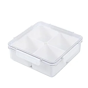 Show moreIntroducing the Qushy White Square Plastic Divided Serving Tray, a versatile and practical solution for all your entertaining needs. Crafted from thick, food-grade plastic, this durable, BPA-free snack tray is expertly designed to stand the test of time while providing a superb function. Measuring 7.87" x 7.87" x 2.55", it perfectly accommodates an array of delicious delights, from crispy veggies and succulent fruits to decadent candies and more. Thanks to its transparent airtight lid, your foods will stay fresh longer and allow for seamless transitions from kitchen prep to serving at parties.