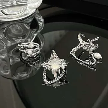 QXFQJT Y2k Moonstone Rings Rhinestone Star Irregular Agate Grunge Rings Set for Women (Style 2)