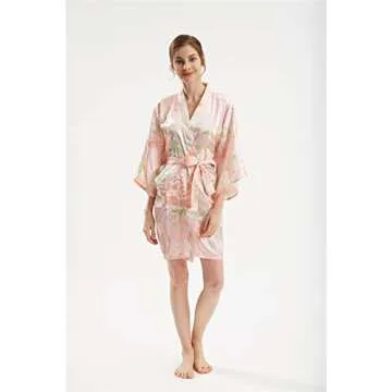 QXQTER Floral Satin Bridal Robe Silk Bridesmaid Robes Bridal Party Robe Dressing Gown Wedding Gifts