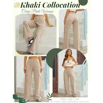 QYANGG High Waist Cargo Pants Women Stretch Baggy Cargo Pants Women Multiple Pockets Relaxed Fit Straight Wide Leg Y2K Pants Khaki