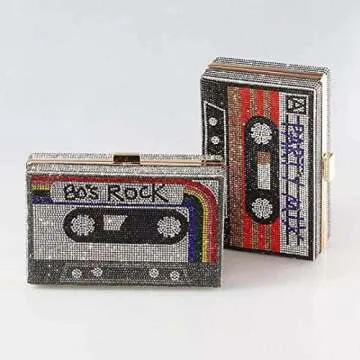 QZUnique Tape Shaped Shoulder Bag Radio Recorder PU Crossbody Bag Women's Retro Evening Bag Handbag Clutch Purse