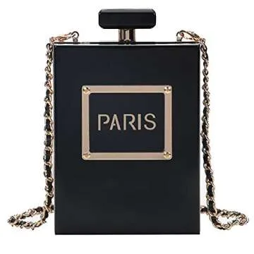 QZUnique Women's Acrylic Paris Perfume Bottle Shaped Clutch Bag Chain Handbag Purse Shoulder Bag Black