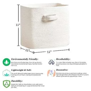 R RUNKA Storage Cube Baskets for Organizing - 3 Pack - 11 inch Square Baskets for Cube Storage, Closet Storage Bins - Woven Cube Storage Bins for Shelves - Cube Drawer - Ideal for Toy Storage |White