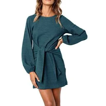 Show moreStep out in effortless elegance with the R.Vivimos Women's Autumn Winter Cotton Long Sleeves Elegant Knitted Bodycon Tie Waist Sweater Pencil Dress. This chic and versatile dress is designed with comfort and style in mind, featuring a flattering silhouette that hugs your body beautifully. Crafted from a soft blend of 33% cotton, 63% rayon, and 4% spandex, it ensures a comfortable fit that stretches with your movements. The round neckline and full-length lantern sleeves add a touch of sophistication, making it perfect for both casual outings and dressy occasions.