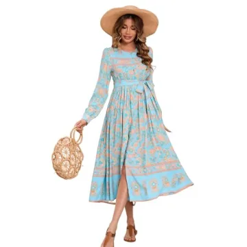 Show more Introducing the ultimate addition to your wardrobe, the Spring Summer Boho Dress from our exclusive collection! This dress is tailored for those who seek a blend of comfort and style in their day-to-day fashion. Crafted from lightweight, soft, and breathable floral print flowy fabric, its unlined design and non-stretch material make it an ideal choice for the warmer seasons. With a chic button-down style and a loose fit, this dress ensures maximum comfort while embracing the essence of bohemian fashion. It features a detachable belt that allows for a customized fit, perfect for various body types and occasions.