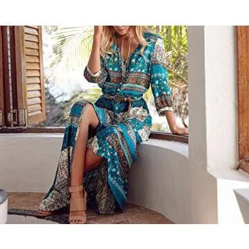 Show moreIntroducing the ultimate summer essential, the R.Vivimos Women's Summer Boho Button Up V Neck Floral Print Roll Up Casual Split Beach Midi Dress! Crafted to elevate your style while ensuring peak comfort, this beautiful midi-length dress is your go-to for those sweltering sunny days. Made from lightweight materials, it promises to keep you cool and breezy, perfect for visits to the beach, casual outings, or even daily errands. Featuring a stunning floral print design, this dress adds a touch of natural elegance while the drawstring tie at the waist offers a customizable fit that flatters every body type.