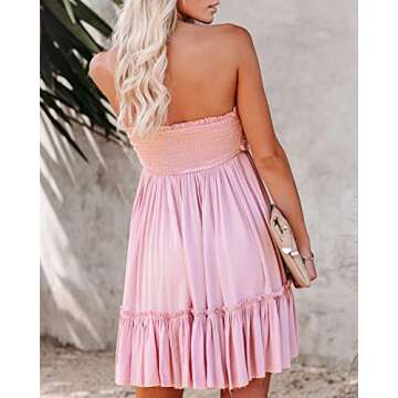 R.Vivimos Women's Summer Cotton Boho Beach Sleeveless Tie Front Mini Dress Tube Top Dress (Small, Pink)