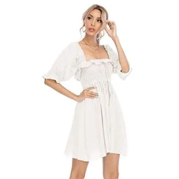 R.Vivimos Women's Summer Cotton Half Sleeves Backless Ruffled Mini A-Line Dress (Small, White)