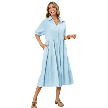 Show moreDiscover the allure of effortless style with the R.Vivimos Women's Summer Cotton Half Sleeves Button Down Casual Loose Slit Midi Dress. This beautifully crafted midi dress combines the elegance of classic design with the practical comforts of everyday wear. Made from 100% premium cotton, the fabric is lightweight and breathable, perfect for keeping you comfortable during the warm summer months. The stunning V-neck and half-sleeve design not only enhance your silhouette but also offer versatility to suit any occasion, from family outings to relaxing weekends at home.