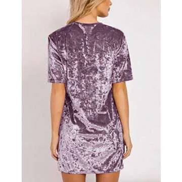 R.Vivimos Women's Summer Short Sleeve Crushed Velvet Mini Dress (2XL, Purple)