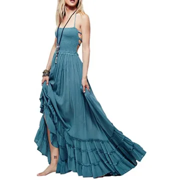 Show moreIntroducing the R.Vivimos Women's Summer Boho Sexy Backless Long Dress, your must-have wardrobe staple for the warm summer months! This exquisite dress combines luxurious Cotton and Rayon, creating a soft, breathable fabric that feels amazing against your skin. The stunning design features a shirred elastic bodice that perfectly contours to your body, offering a flattering fit that enhances your natural curves. With a halter neck tie that showcases your back and an airy ruffle hemline, this maxi dress is not only stylish but also adds a playful element to your look.
