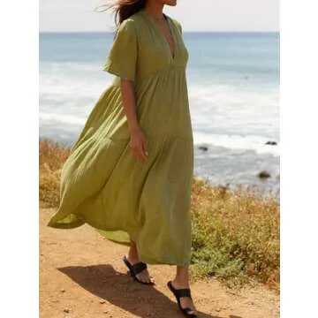 Show more Introducing the R.Vivimos Women's Summer Cotton Flowy Maxi Dress, your new go-to warm-weather essential that effortlessly combines comfort with style. Crafted from breathable, skin-friendly cotton, this dress offers a superior softness that feels fantastic against your skin. Its weighty yet flowy fabric allows for the perfect drape, making it ideal for everything from casual outings to beach vacations. The vibrant Olive Green hue adds a striking touch to your summer wardrobe, ensuring you’ll turn heads wherever you go.