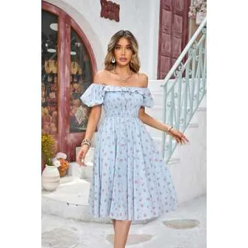Show moreStep into summer with the R.Vivimos Womens Summer Floral Print Puff Sleeves Vintage Ruffles Midi Dress, expertly crafted for elegance and comfort. This exquisite dress is made from soft and comfortable cotton fabric, ensuring a luxurious feel against your skin. The unique square neckline beautifully frames your shoulders and collarbone, while the delightful puff sleeves add a touch of romance and charm to your look. The stunning floral print combined with ruffles not only captures the essence of vintage fashion but also enhances the A-line silhouette, creating a graceful flow that flatters all body types. Perfect for various occasions, this midi dress will quickly become a cherished staple in your summer wardrobe.