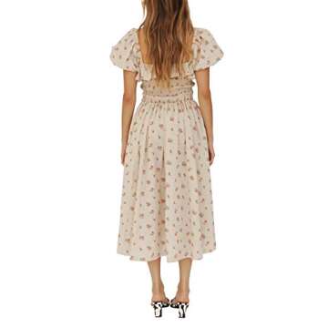 R.Vivimos Womens Summer Floral Print Puff Sleeves Vintage Ruffles Midi Dress (Small, Beige#1)