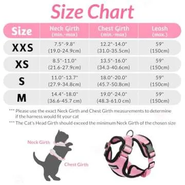 Show more Introducing the rabbitgoo Cat Harness and Leash for Walking, an essential gear for every feline adventurer! This innovative harness, designed for kittens with a neck girth of 7.5-9.8 inches and a chest girth of 12.2-14.0 inches, ensures a snug and comfortable fit for your furry friend. Made from a breathable air mesh, it's lightweight (approximately 100g) and perfect for daily walks, jogging sessions, and outdoor escapades. Not only does it provide safety and comfort, but its stylish pink color makes it a chic accessory for your kitty too!