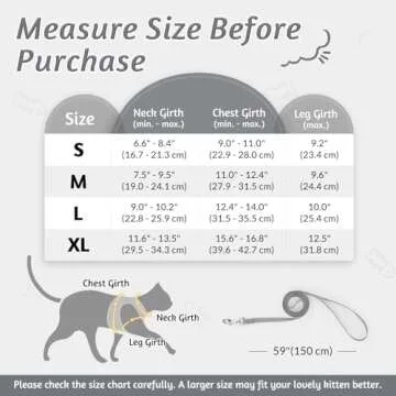 Our harness set includes a sturdy 59-inch nylon leash that complements the harness brilliantly. This ensures you have complete control over your pet while on walks, making them enjoyable experiences for both of you. The fast-release buckle and metal D-rings provide secure leash attachments, and the magic tape closure ensures your cat stays snugly in place without any escape risks.