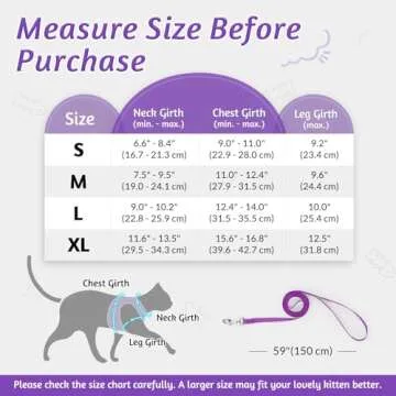 rabbitgoo Cat Harness and Leash Set for Walking Escape Proof, Adjustable Soft Kittens Vest with Reflective Strip for Cats, Comfortable Outdoor Vest, Purple, M