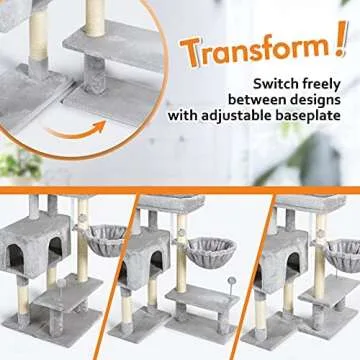rabbitgoo Cat Tree Cat Tower with Adjustable Base, Small Cat Tree for Indoor Cats, Multi-Level Cat Condo with Scratching Posts & Large Perch, Cat Climber Stand for Small Kittens, 38" Tall (Grey)