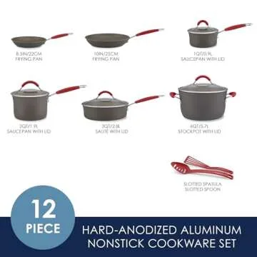 Show more This exquisite cookware set from Rachael Ray combines functionality and style to elevate your culinary creations. Constructed with durable hard-anodized material, it ensures quick and even heating across all cooking surfaces, making it an essential addition to any kitchen. Whether you are preparing a family meal or hosting a dinner party, the aesthetic espresso-colored nonstick interior not only guarantees impeccable food release but also adds a touch of elegance to your cookware collection.