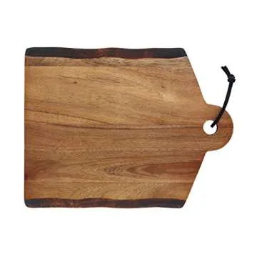 While there are many cutting boards on the market, the Rachael Ray Pantryware Cutting Board stands out due to its exquisite design and practical features. Unlike many competitors, this board incorporates a leather loop for easy hanging, which not only saves storage space but also gives it an artistic flair. Additionally, the use of sustainable acacia wood contrasts with cheaper, synthetic options that may not offer the same durability or aesthetic appeal. This cutting board harmonizes function and beauty better than standard cutting boards, offering great value for quality.