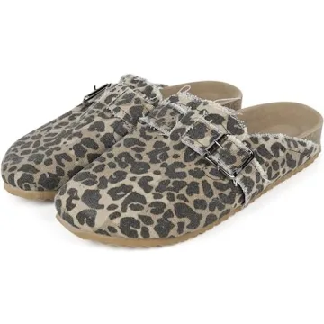 Show more Step into unparalleled comfort with the RACHAPE Canvas Loafer Women's Vintage Clogs. These stylish slip-on mules, designed with a flair for both comfort and aesthetic appeal, are your new go-to choice for casual outings or leisurely days at home. Made with a luxurious natural cork insole, they effectively disperse pressure on your feet, transforming every step into a soft and cozy experience. The chic backless design offers effortless style, while the unique patterns like Leopard Print and Cow Print make them a fashionable statement piece in any outfit.
