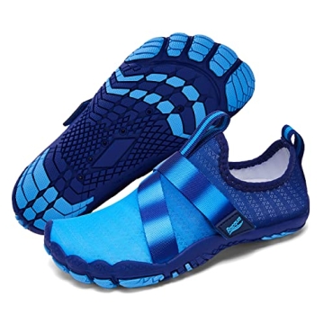 Show more Introducing the Racqua Boys Water Shoes, the perfect companion for your child's aquatic adventures! These kids' beach swim barefoot aqua shoes are designed with a focus on comfort, style, and durability, making them an essential addition to any young one's shoe collection. Crafted with lightweight materials that dry quickly, these shoes make transitions from land to water effortless while ensuring your little one enjoys every moment outdoors. Available in vibrant blue, they not only provide a sleek and attractive look but also offer the perfect blend of functionality and fun!