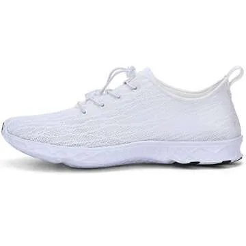 Racqua Mens Womens Lightweight Quick Drying Aqua Water Shoes Athletic Sport Walking Shoes Swimming Shoes White 7 Women/6 Men
