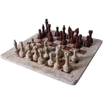 RADICALn Handmade Fossil Coral and Dark Brown Marble Full Chess Game Original Marble Chess Set