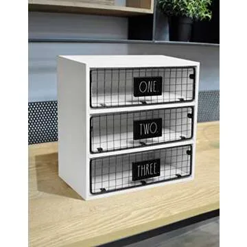 Show moreIntroducing the Rae Dunn 5 Drawer Desktop Organizer, the perfect blend of style and functionality for any workspace. This exquisite piece is expertly crafted to keep your environment organized while adding a touch of charm. With its distinctive handcrafted look and signature Rae Dunn font, this organizer stands out as a unique accessory for both home and office settings. Featuring five spacious drawers, it offers ample space for storing all your essential items, from stationery and invoices to crafting supplies. The elegant yet practical design allows you to maintain a clutter-free desktop, ensuring that everything you need is within easy reach.