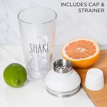 Rae Dunn Glass Cocktail Shaker - Martini Shaker for Drinks - 23 OZ Capacity Glass Margarita Shaker for at Home Bar, Entertaining and Parties (White)