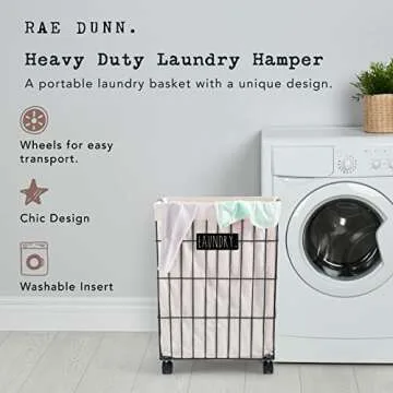 Rae Dunn Heavy Duty Laundry Hamper on Wheels - Lined Basket with Removable Cloth Liner - By Designstyles