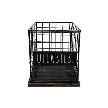 Rae Dunn Utensil Caddy - Silverware Holder, Cutlery Caddy for Fork, Knife and Spoon - Rustic Farmhouse Metal Grid-Iron Frame - Kitchen Organizer and Countertop Space Saver for Flatware