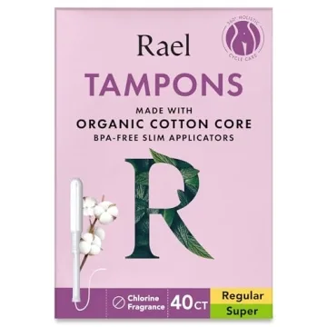 Show more Introducing Rael Organic Cotton Tampons, a revolutionary product designed for those who prioritize health and comfort during their menstrual cycle. Made with a 100% organic cotton core, these tampons are cultivated without pesticides and are free from harmful chemicals like chlorine bleach. What sets Rael apart is its commitment to sustainability and user-friendly design, ensuring a safe experience for all skin types. Each tampon is housed in an ultra-slim, BPA-free plastic applicator, featuring a rounded tip and a contoured anti-slip grip for effortless insertion.