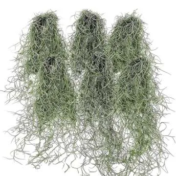 Show more Transform your indoor and outdoor spaces with the LIVE SPANISH MOSS from Ragnaroc, a charming addition that brings nature into your decor. This premium 6-ounce bundle features strands approximately 15 inches in length, showcasing a beautiful silvery-green hue. Scientifically known as Tillandsia Usneoides, this air plant variety thrives gracefully without soil, creating an awe-inspiring display in your home or event. Whether you are adorning your living space or preparing for a special celebration, this stunning moss is sure to elevate your aesthetic.